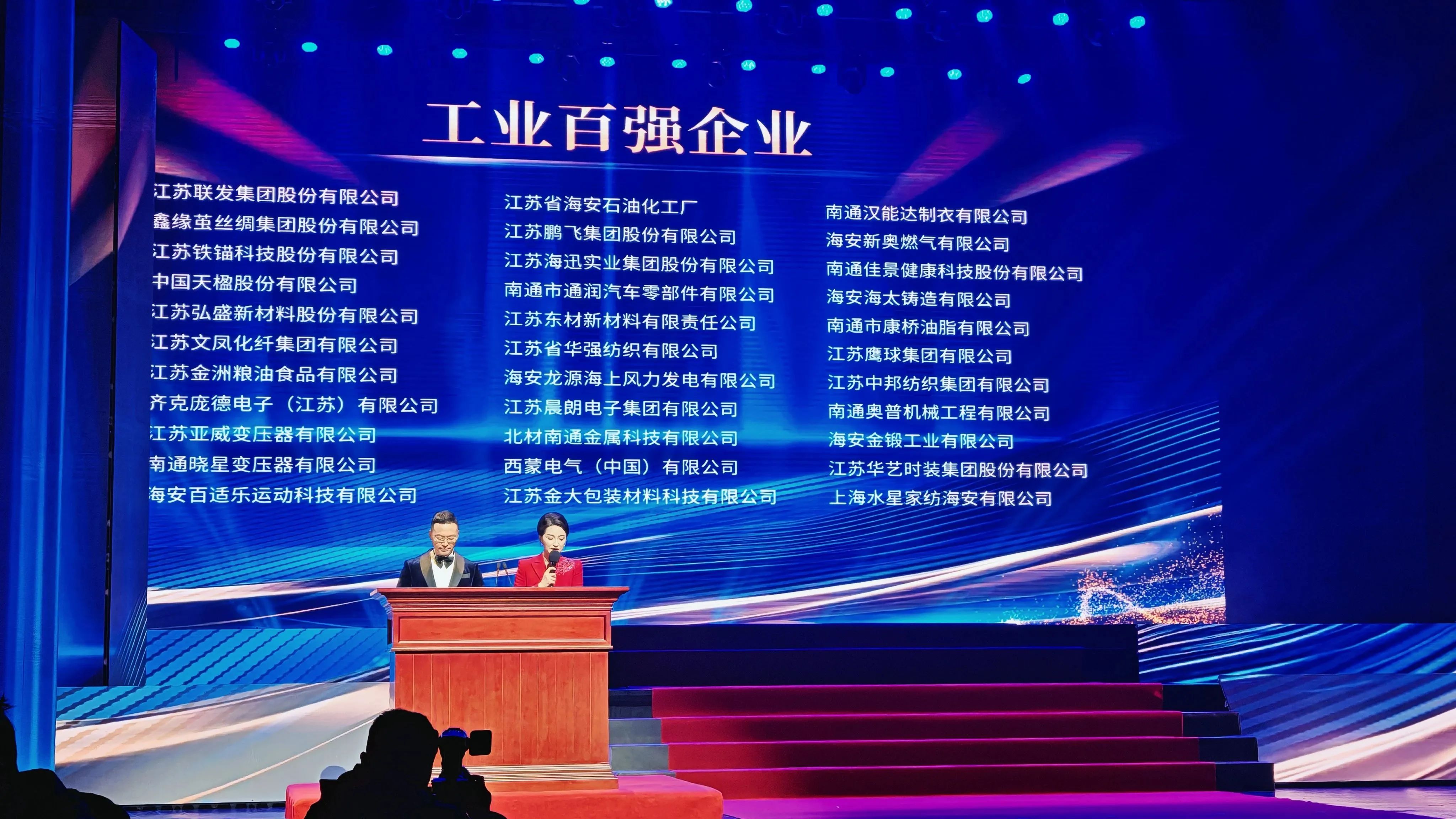 2025年2月4日,海安市經濟高質量發展大會暨2024年度影響力企業家頒獎儀式舉行。市四套班子全體負責人,各區鎮、市級機關各部門主要負責人,十大專業園區辦公室、產業鏈培育辦公室負責人,市屬國企以及供電、燃氣、通信、金融、在海高校、各產業研究院主要負責人,全市約800家企業主要負責人參加活動。會議通報了農業高質量發展十強企業、開放型經濟先進企業、稅收貢獻超億元企業、稅收貢獻超5000萬元企業、工業百強企業、現代服務業十強企業、星級企業家、建筑業十強企業、服務地方經濟發展優勝金融單位名單,發布了2024年度海安影響力企業家名單。