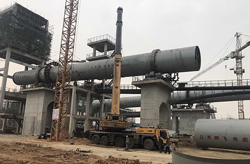 轉化焙燒:鋰輝石精礦從精礦庫人工送至斗式提升機提升至精礦倉,再經圓盤給料機和螺旋給料機加入碳酸鋰回轉窯窯尾,利用窯尾預熱段高溫氣體干燥精礦,精礦在煅燒段約1200℃左右的溫度下進行晶型轉化焙燒,由α型(單斜晶系,密度3150kg/m3)轉化為β型鋰輝石(四方晶系,密度2400kg/m3,即焙料),轉化率約98%。